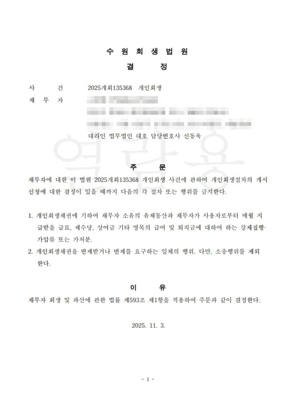 [금지명령]수원회생법원 2025개회135368 조O행