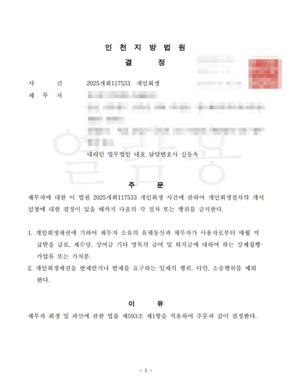 [금지명령]인천지방법원 2025개회117533 김O림