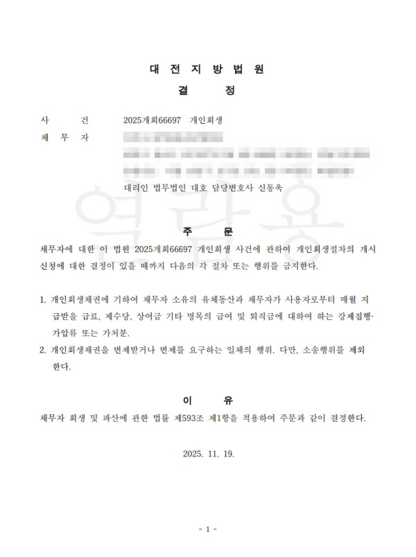 [금지명령]대전지방법원 2025개회66697 정O숙