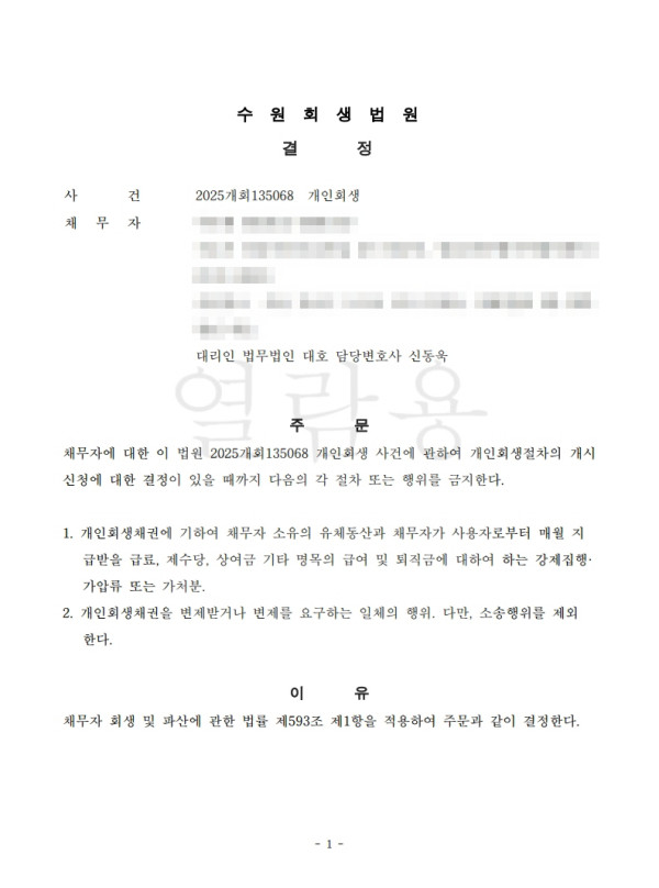 [금지명령]수원회생법원 2025개회135068 서O현