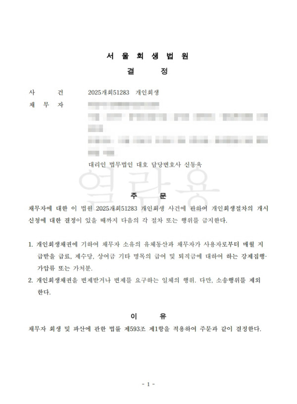 [금지명령]서울회생법원 2025개회51283 최O옥