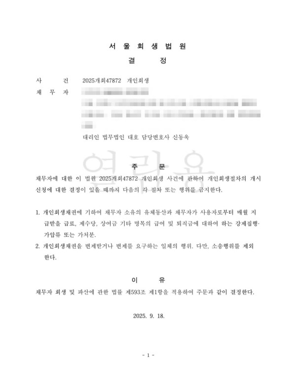 [금지명령]서울회생법원 2025개회47872 서O연
