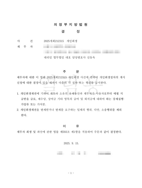 [금지명령]의정부지방법원 2025개회212315 윤O식