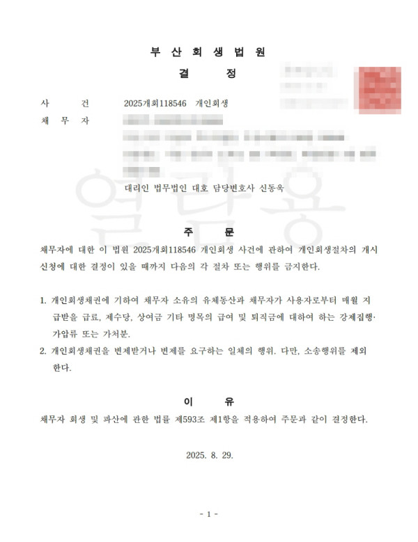 [금지명령]부산회생법원 2025개회118546 배O주