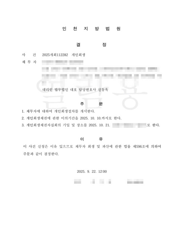 [개시결정]인천지방법원 2025개회112282 김O완