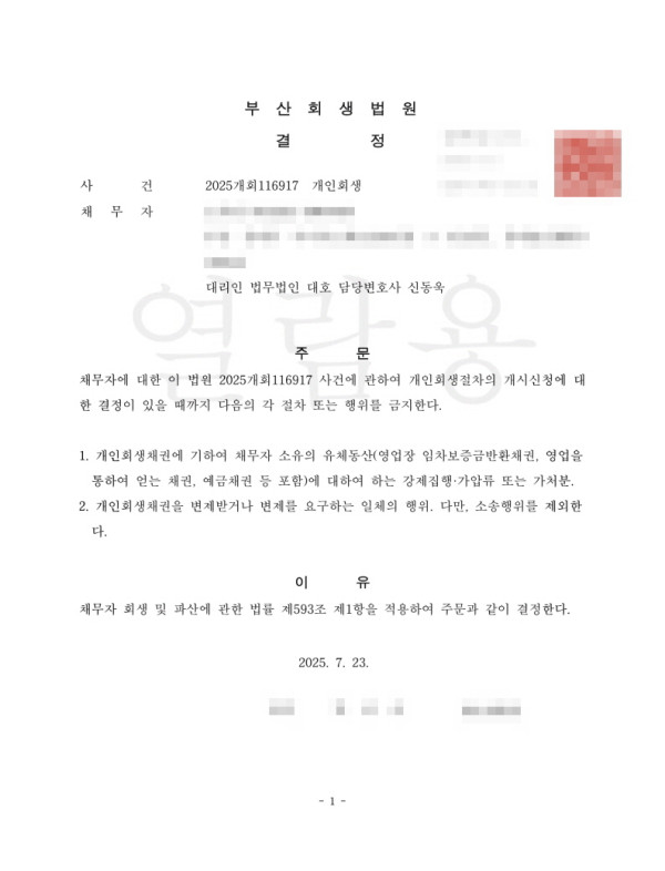 [금지명령]부산회생법원 2025개회116917 오O원