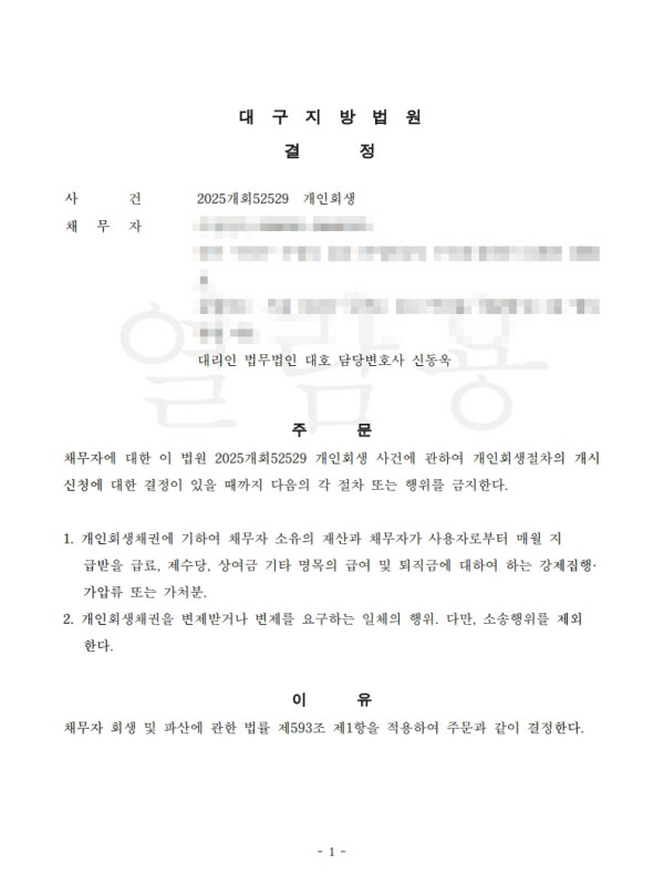 [금지명령]대구지방법원 2025개회52529 이OO숙