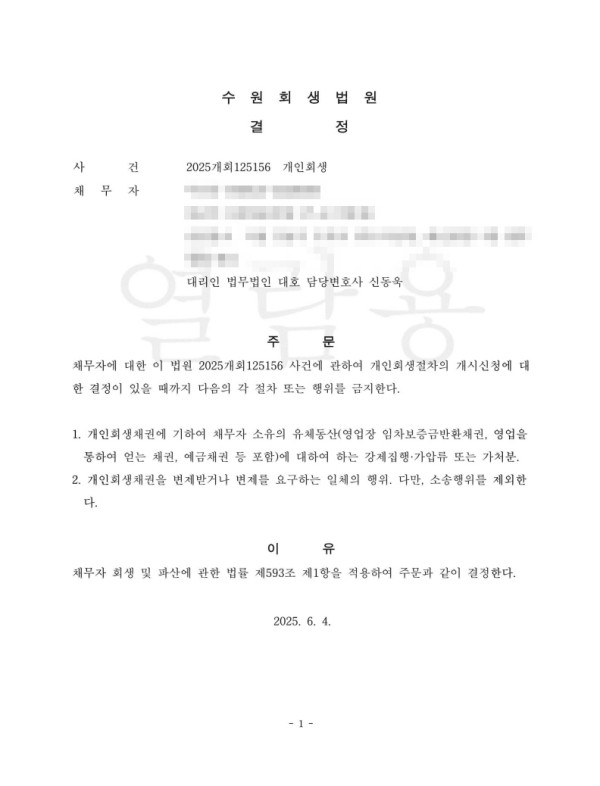 [금지명령]수원회생법원 2025개회125156 이O숙