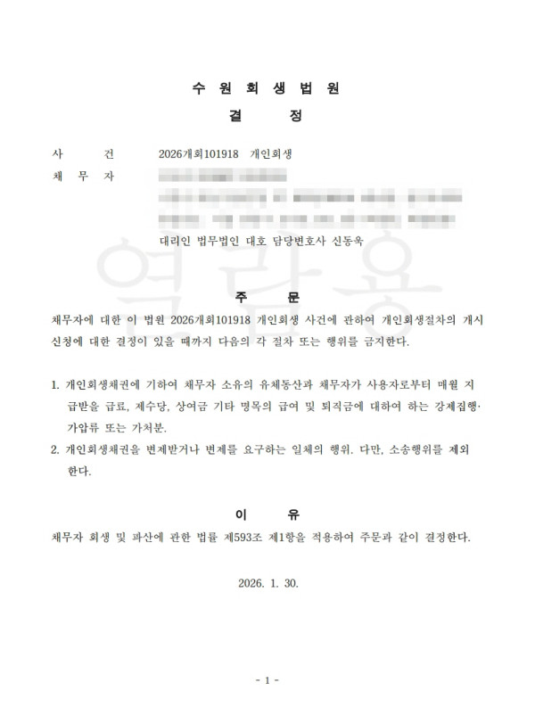 [금지명령]수원회생법원 2026개회101918 김O진