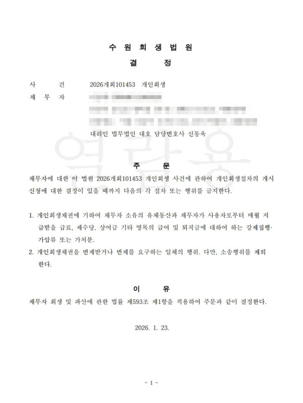 [금지명령]수원회생법원 2026개회101453 이O혁