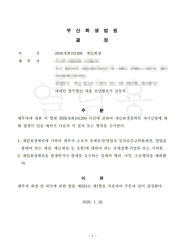 [금지명령]부산회생법원 2026개회101200 이O형