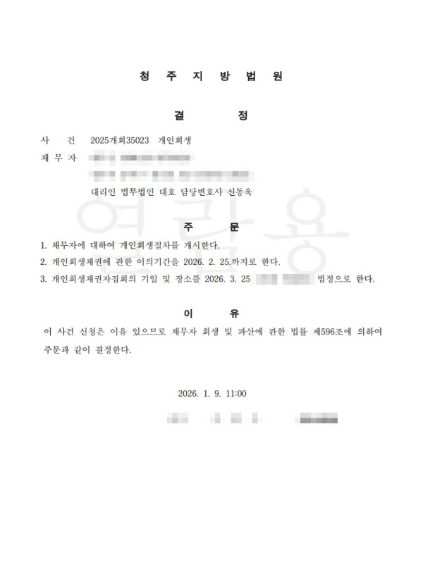[개시결정]청주지방법원 2026개회35023 배O은
