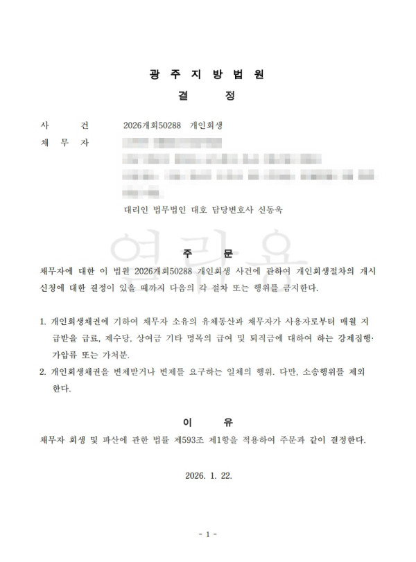 [금지명령]광주지방법원 2026개회50288 김O마