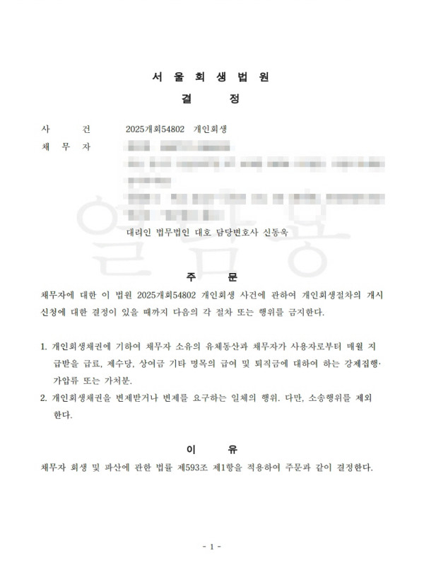 [금지명령]서울회생법원 2025개회54802 최O창