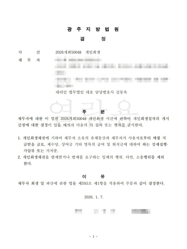 [금지명령]광주지방법원 2025개회50048 박O희