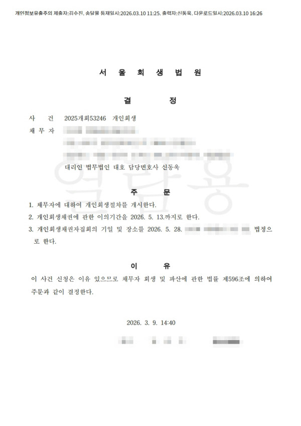 개시결정 [개시결정]서울회생법원 2025개회53246 이O경